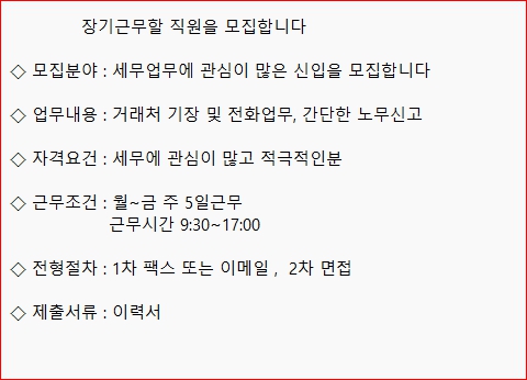 강남구청역 인근 세무사 사무실 경력직, 단기알바 직원채용